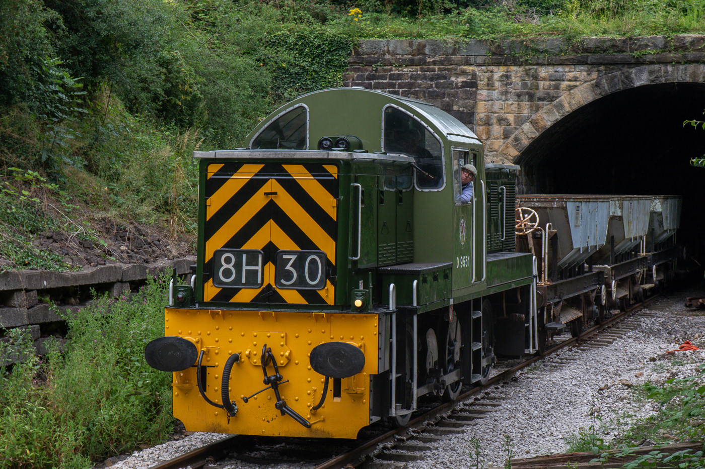 BR Class 14 Locomotive "Teddy Bear" #D9551 emerging from the Short Tunnel at Duffield on the Eccelesbourne Valley Railway 24 July 2024