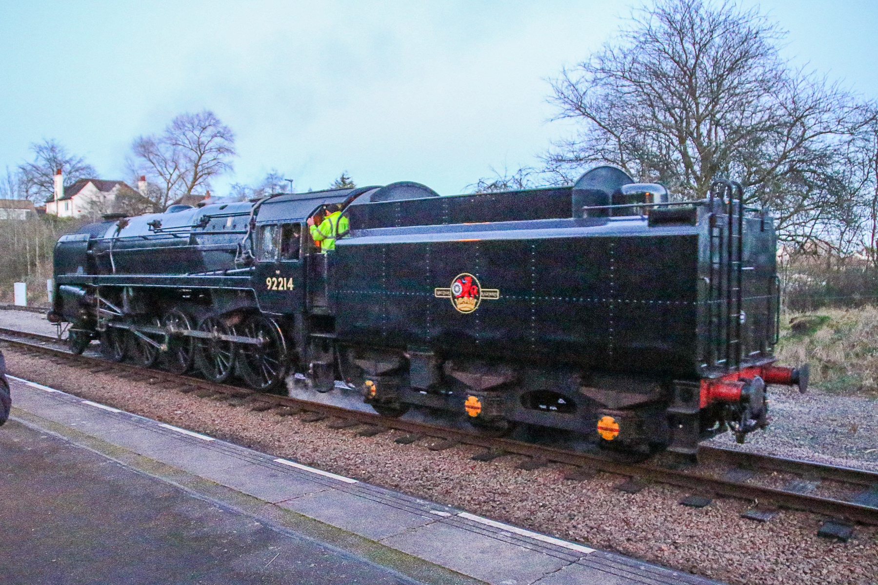 BR Standard Class 9F locomotive 92214 "Leicester City" at Leicester North Station during the GCR Steam Gala 26 January 2024