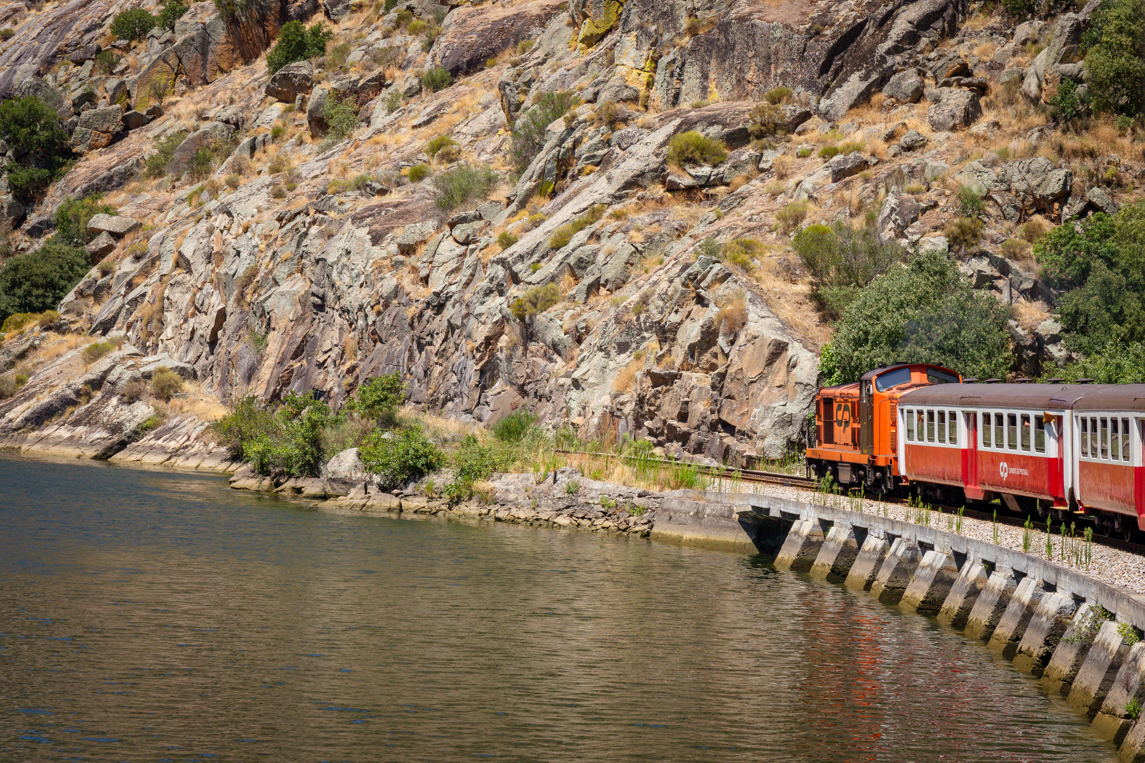 Portugese Class 1400 Diesel Locomotive #1436 heading up the Picturesque Duoro Valley on a Train from Pocinho to Porto. These Diesel Electric Locomotives were built in Portugal under License from English Electric with the locomotive being to a British Design