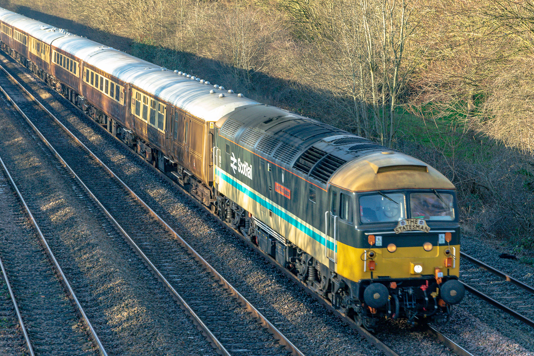 BR Class 47 Diesel Locomotading North on a Statesman Special Train from Stoke on Trent to Appleby on the Settle to Carlisle at Sunnyhill Derby 3 February 2024ive 47712 Lady Diana Spencer he